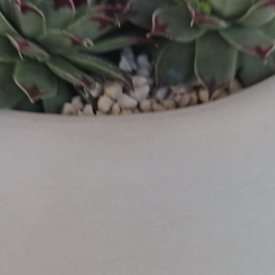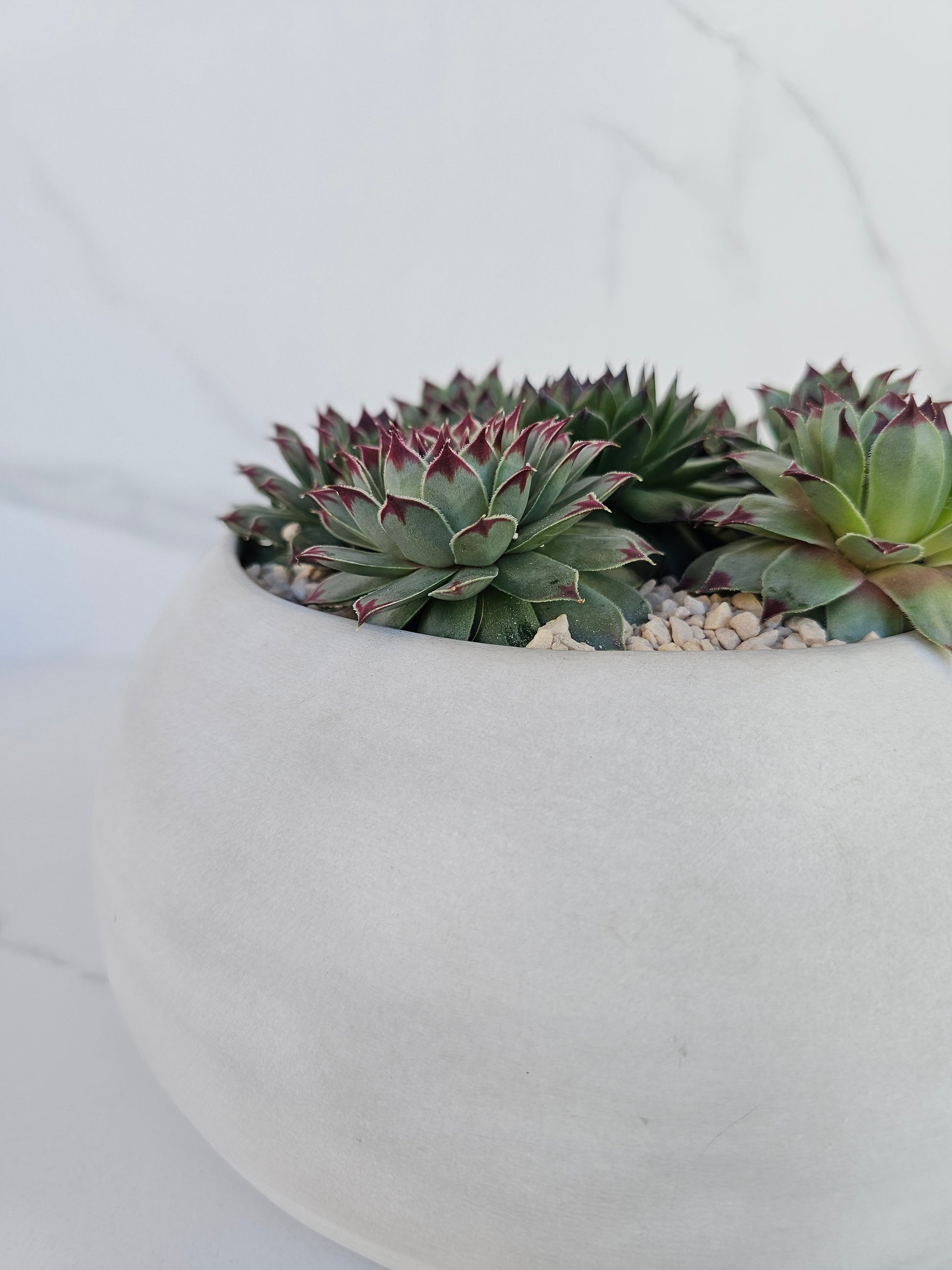 Minimalist style meets natural charm with this elegant succulent arrangement. Designed in a modern white ceramic pot made in Portugal by Sporvil Ceramic, this arrangement is the perfect way to bring greenery into any space. Whether styled on a coffee table, desk, or shelf, these hardy succulents add a refreshing touch of nature while staying easy to maintain.